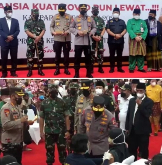 “Sesampainya di lokasi ini ada 2.500 yang akan divaksin dan targetnya hari ini total di Riau 65.000 dosis,” ungkapnya.Dalam kegiatan ini, Kapolri juga meninjau secara virtual pelaksanaan vaksinasi 34 provinsi di 6.274 titik.Kapolri, dalam menekan laju