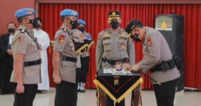 PEKANBARU, (Kanalkini.com) - Kapolda Riau, Irjen Pol Mohammad Iqbal, memimpin upacara serah terima jabatan (Sertijab) pergantian sejumlah pejabat kepolisian setingkat Perwira Menengah (Pamen) di jajarannya. Upacara Sertijab digelar di Aula Tribrata, lantai 5, Gedung Markas Polda Riau di Jalan Pattimura, Kota Pekanbaru. Jumat, 7/1/22.Kapolri Jenderal Listyo Sigit Prabowo, sebelumnya telah mengeluarkan surat telegram mutasi pada Desember 2021 lalu. Termasuk untuk anggota polisi di jajaran