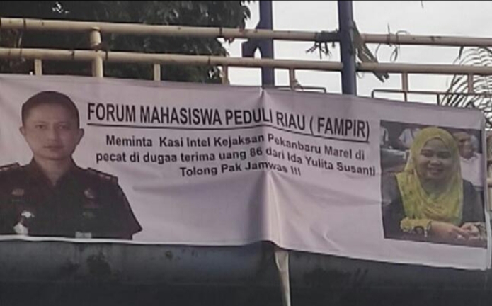 Namun untungnya, Satuan Polisi Pamong Praja (Satpol PP) Kota Pekanbaru cepat menurunkan spanduk dari Forum Mahasiswa Perduli Riau (Fampir) dan Aliansi Mahasiswa Pemuda Penyelamat Uang Negara (Ampun).Dari pantauan media, salah satu spanduk terbentang dengan foto Marsagi Marel