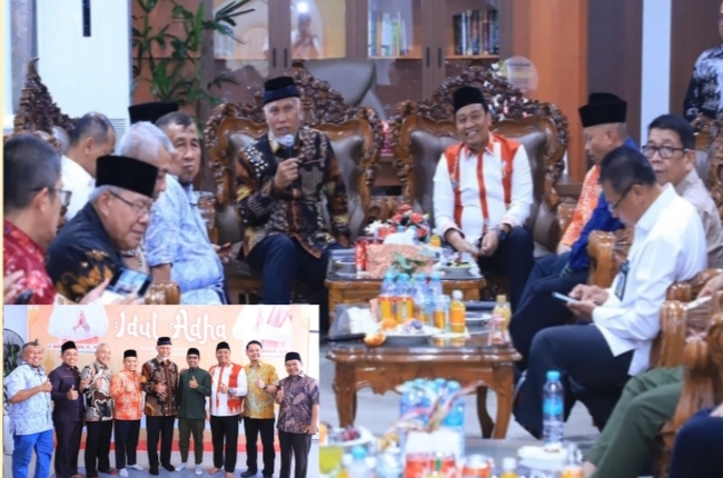 PEKANBARU, (Kanalkini) - H.Markarius Anwar ST M.Arch, Wakil Wali Kota Pekanbaru menerima kunjungan Gubernur Sumatera Barat (Sumbar) H Mahyeldi Ansharullah S.P.Kedatangan Buya, sapaan Mahyeldi Ansharullah, disambut Markarius didampingi Istri dr Sari Rahmawati Sp.OG, bertempat di rumah dinas wakil walikota setempat di Jalan Ronggo Warsito. Rabu, 11/6/25.Turut hadir dalam pertemuan tersebut, Ketua DPRD Kota Pekanbaru Muhammad Isa Lahamid dan Asisten I Bidang Pemerintahan dan Kesra Setdako