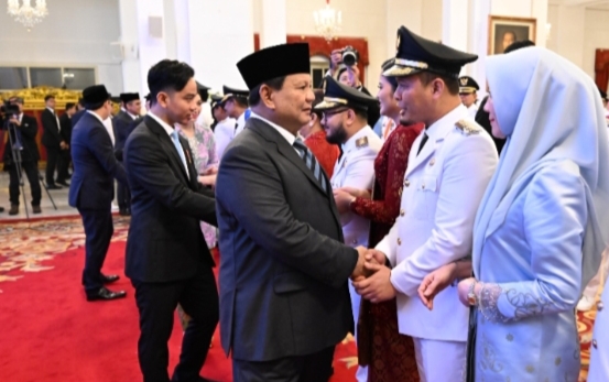 PEKANBARU, (Kanalkini.com) - Presiden Republik Indonesia Jenderal TNI (Purn) H Prabowo Subianto, melantik H. Agung Nugroho S.E M.M dan H Markarius Anwar S.T M.Arch sebagai Walikota-Wakil Walikota Pekanbaru periode 2025-2030. Agung Nugroho dan Markarius Anwar dilantik bersamaan dengan 961 kepala daerah terpilih lainnya di Istana Negara di Jakarta. Kamis (20/2/2025). Pelantikan turut disaksikan Wakil Presiden Gibran Rakabuming Raka, pimpinan lembaga tinggi negara, menteri Kabinet Merah