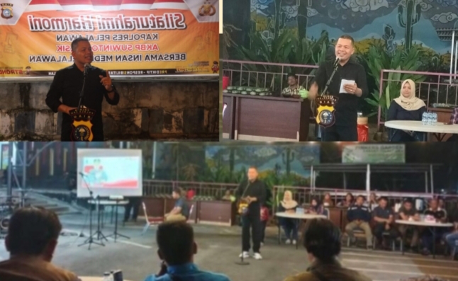 PELALAWAN, (Kanalkini.com) - Kapolres Pelalawan AKBP Suwinto, SH., SIK, silaturahmi harmoni dengan insan media, di Mapolres Pelalawan jalan Aryya Guna1, Pangkalan kerinci, Kecamatan Pangkalan kerinci, kabupaten Pelalawan Riau. Jumat, 10/2/23.