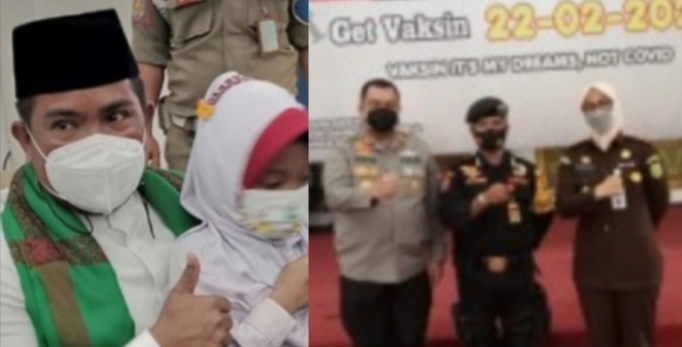 Petugas Vaksinator dari tim kesehatan Polres Pelalawan bekerjasama dengan Dinas kesehatan pemerintah kabupaten Pelalawan, pelaksanaannya digelar secara serentak di seluruh Indonesia.Dalam rangka vaksin massal serentak se-Indonesia, Bupati Pelalawan H. Zukri