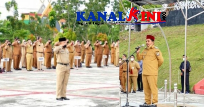 PELALAWAN, (Kanalkini.com) - Wakil Bupati Pelalawan H.Nasarudin,SH.,MH Saat Pimpin Apel Pagi Dihalaman Kantor Bupati Kabupaten Pelalawan. Dalam amanatnya, ia meminta kepada seluruh ASN agar disiplin dalam bekerja.