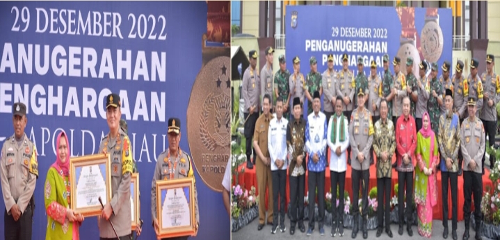 PEKANBARU, (Kanalkini.com) - Kasmarni Bupati Bengkalis, Salah satunya Kepala Daerah yang menerima penghargaan dari kapolda riau. Sebagai bentuk apresiasi serta dukungan atas kerja keras dan kerja sama yang telah terbangun baik dalam membantu tugas kepolisian di Daerah. Kapolda Riau Irjen Pol M.IQbal, menganugerahkan penghargaan kepada Forkopimda di lingkungan Provinsi Riau, Instansi Vertikal, Ketua Organisasi Masyarakat serta Tokoh Masyarakat dan berbagai pihak lainnya.
