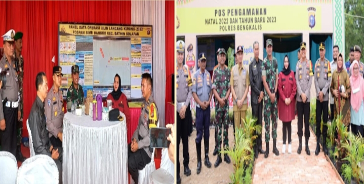 MANDAU, (MTNc) - Bupati Bengkalis Kasmarni, Sabtu 24 Desember 2022 meninjau posko pengamanan perayaan Natal 2022 dan Tahun Baru 2023 (Nataru), untuk memberikan semangat kepada petugas yang berjaga.