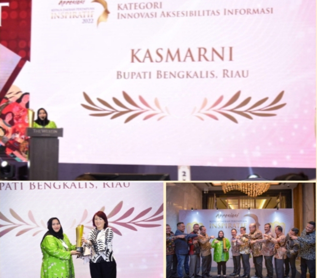 Kali ini penghargaan diberikan kepada Bupati Bengkalis Kasmarni atas keberhasilannya mendorong kemajuan daerah yang dipimpinnya sejak dilantik pada 26 Februari 2021 lalu oleh Gubernur Riau.