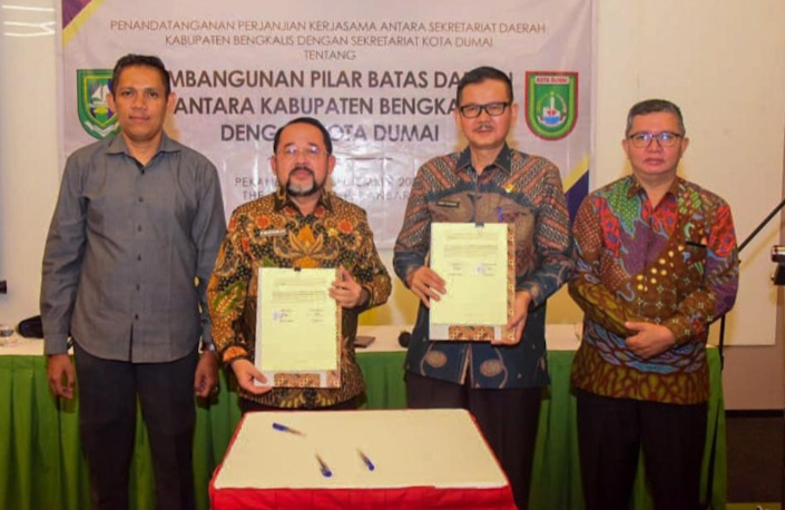Terkait Pembangunan Pilar Batas Daerah Antara Kabupaten Bengkalis Dengan Kota Dumai Pemkab Bengkalis Diwakili Sekda Bengkalis H Bustami HY Tandatangani PKS