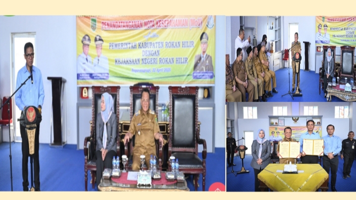 ROHIL, (Kanalkini) - Dalam upaya memperkuat tata kelola pemerintahan yang bersih dan transparan, Pemerintah Kabupaten Rokan Hilir secara resmi menjalin kerja sama strategis dengan Kejaksaan Negeri Rokan Hilir. Kesepakatan tersebut dituangkan dalam bentuk penandatanganan Memorandum of Understanding (MoU) yang dilaksanakan di Kantor Bupati Rokan Hilir, Provinsi Riau. Selasa, 22/04/2025.Penandatanganan dilakukan langsung oleh Bupati Rokan Hilir, H. Bistamam, dan Kepala Kejaksaan Negeri Rokan