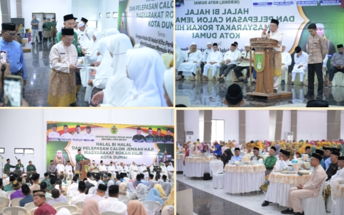 ROHIL, (Kanalkini.com) - H. Bistamam Bupati Rokan Hili menghadiri kegiatan Halal bihalal Ikatan Keluarga Rokan Hilir (IKROHIL) Kota Dumai sekaligus pelepasan Calon Jamaah Haji (CJH), di Gedung Zainudin Abdullah komplek Islamic Center Kota Dumai Provinsi Riau. Minggu, 11/5/25.Acara halal bihalal IKROHIL kota Dumai ini selain di hadiri Bupati Rohil juga di hadiri Wali Kota Dumai, H. Faisal, Sekda Rohil Fauzi Efrizal, Ketua TP PKK Rohil Hj Basyariah, Ketua DWP, Ketua IKROHIL Dumai H. Ahmadi