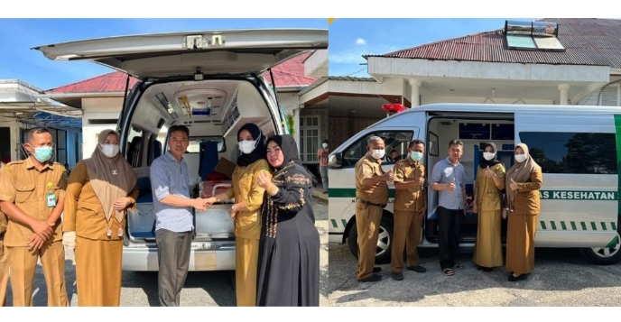 ROHIL, (Kanalkini.com) - Bupati Rokan Hilir (Rohil) Afrizal Sintong Bersama Ketua PKK Sanimar secara langsung menyerahkan satu unit mobil ambulan untuk Puskesmas Sedinginan Kecamatan Tanah Putih, Senin (21/2/2022).
