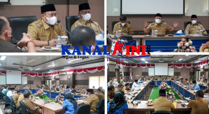 BANGKINANG KOTA, (Kanalkini.com) - Jelan Jadi Kabupaten Kampar ke 72 Tahun 2022 - Dalam menyambut dan memeriahkan serta menyukseskan penyelenggaraan Hari Jadi Kabupaten Kampar ke 72 Tahun 2022 yang bertepatan pada hari Ahad, 6 Februari 2022 mendatang, Untuk itu Bupati Kampar H. Catur Sugeng Susanto, SH di dampingi Sekretaris Daerah Kabupaten Kampar Drs. H. Yusri, M.SI dan Asisiten I Setda Kampar Ahmad Yuzar melakukan Rapat Persiapan Hari Jadi Kampar ke 72 yang di laksanakan di lantai tiga