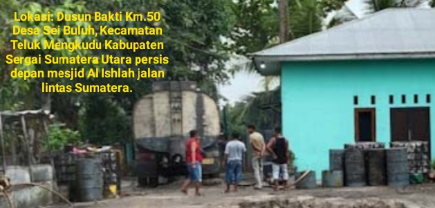 SERGAI (SUMUT), (Kanalkini.com) - Begitu bebasnya beroperasi gudang penampungan Crude Palm Oil (CPO) illegal alias tidak memiliki izin operasional, di wilayah hukum Polres Serdang Bedagai (Sergai) Polda Sumatra Utara, salah satunya yang berlokasi di Dusun Bakti Km.50 Desa Sei Buluh, Kecamatan Teluk Mengkudu Kabupaten Sergai Sumatera Utara persis depan mesjid Al Ishlah jalan lintas Sumatera.