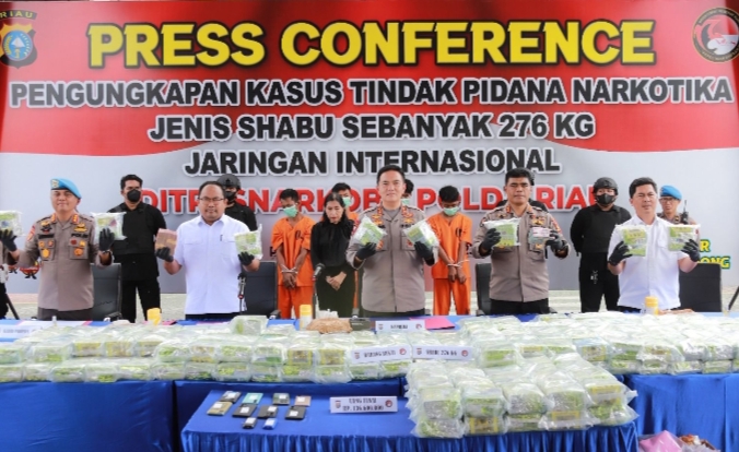 PEKANBARU, (Kanalkini.com) - Kepolisian Daerah (Polda) Riau kembali mengamankan pelaku peredaran gelap narkotika. Kali ini jumlahnya sangat fantastis. Yakni 276 Kg narkotika jenis sabu. Dimana dalam prosesnya, Polisi melalui Direktorat Reserse Narkotika berhasil mengamankan 5 pelaku dan 1 orang diantaranya tewas ditembak lantaran melakukan perlawanan yang membahayakan petugas.