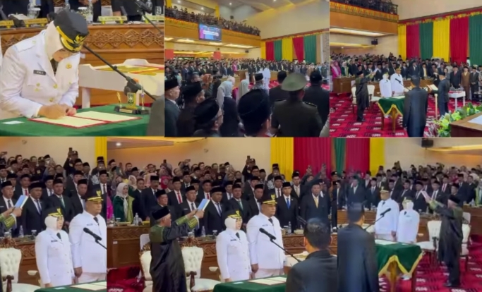 SIAK, (Kanalkini) - Setelah melalui proses yang panjang. Bupati dan Wakil Bupati Siak terpilih, Afni–Syamsurizal, resmi dilantik sebagai Bupati Siak dan Wkl Bupati Siak periode 2025-2030.Pasangan Afni–Syamsurizal tiba dengan menggunakan bus wisata “Siakku”, didampingi Siti Nurbaya dan Iyet Bustami. Mereka disambut hangat masyarakat dengan pertunjukan silat dan kompang sebagai bentuk apresiasi atas terpilihnya kepala daerah baru.Pada prosesi berjalannya pelantikan Bupati