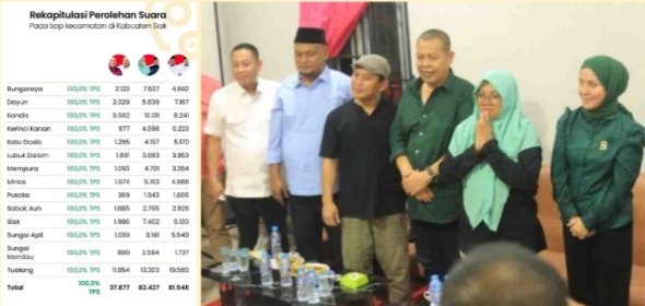 Tim Paslon 02 Bekerja Sama Dengan Tim Paslon 01 Paparkan Hasil Real Count Calon Bupati Dan Wakil Bupati Siak No. Urut 2, Dr. Afni Z - Syamsurizal Deklarasikan Kemenangan
