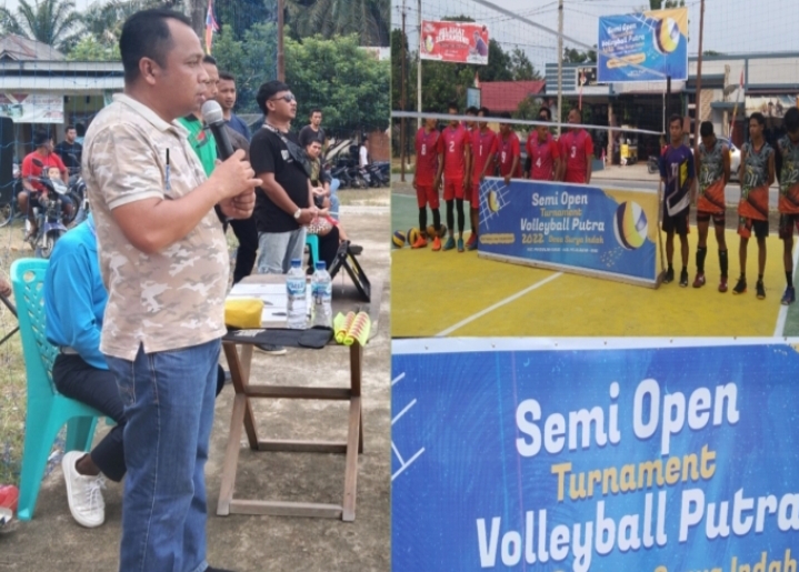 PELALAWAN, (Kanalkini.com) - Baharudin SH, Ketua DPRD Kabupaten Pelalawan membuka Secara Resmi Semi Open Turnament Volly Ball Putra Tahun 2022 di Desa Surya Indah, kecamatan Pangkalan Kuras, Kabupaten Pelalawan Riau. Minggu, 12 Juni 2022.