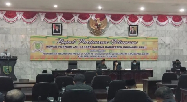 "Ini kegiatan paripurna penyampaian rekomendasi panitia khusus LKPJ 2021," kata Ketua DPRD Inhu Elda Suhanura di Rengat.