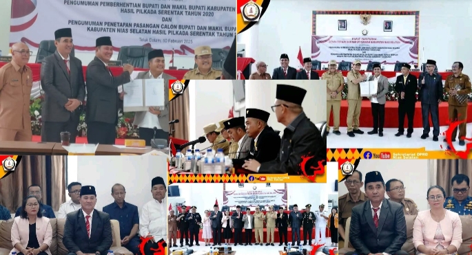 NIAS SELATAN, (Kanalkini.com) - DPRD (Dewan Perwakilan Rakyat Daerah) Kabupaten Nias Selatan (Nisel) gelar Rapat Paripurn, dalam rangka Pengumuman Pemberhentian Bupati dan Wakil Bupati Nias Selatan sebelumnya karena berakhir masa jabatan. Selanjutnya Penetapan Bupati dan Wakil Bupati Nias Selatan terpilih hasil Pilkada pada November Tahun 2024 bertempat diruang rapat paripurna DPRD Nias Selatan. Senin, 10/03/25.