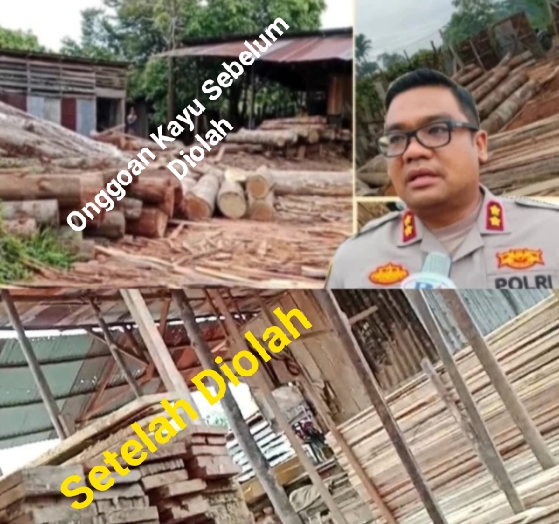 | Swomel Milik Edi, Kayu sebelum Diolah dan Setelah Dan foto Kapolres AKBP Bobby Putra Ramadhan (ft: net) *** |